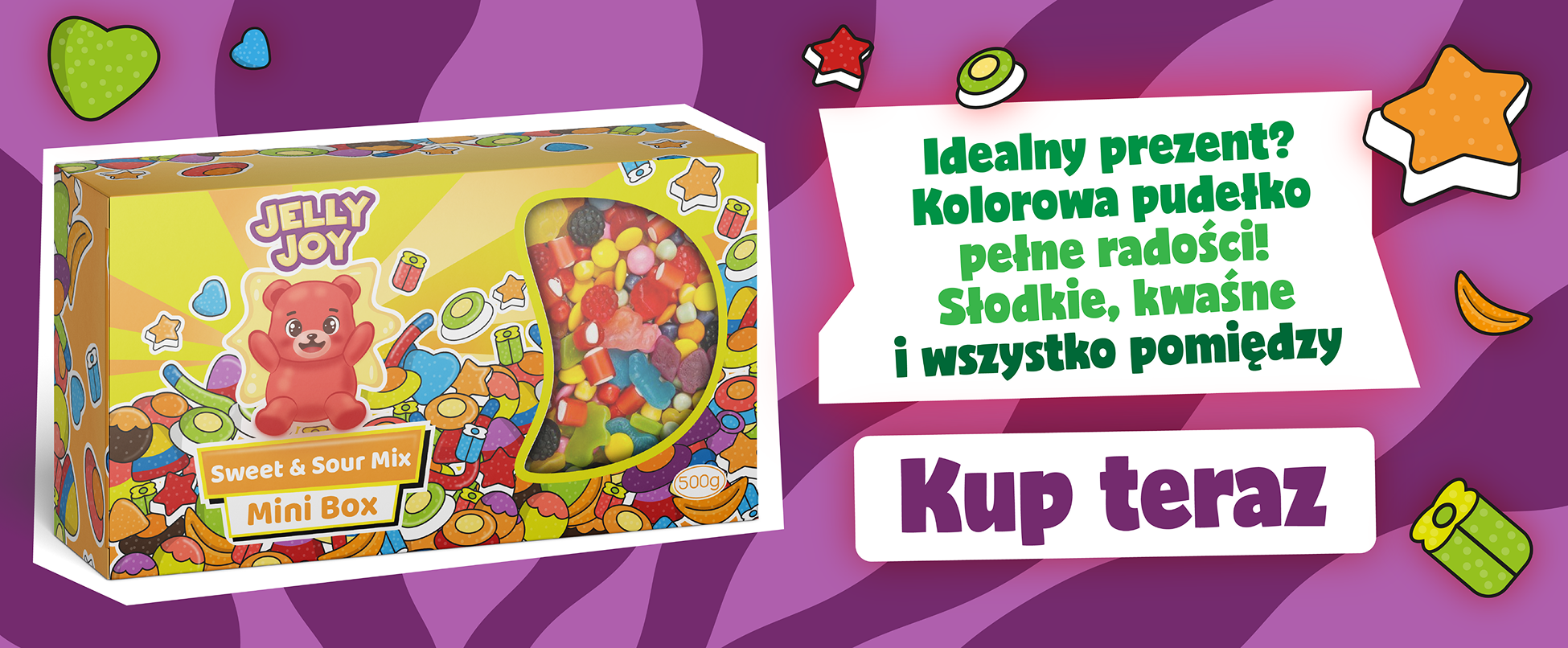 Żelki Jelly Joy to prawdziwa eksplozja smaków! Każdy kawałek jest inny – raz słodki, raz kwaśny, ale zawsze pyszny. Świetna konsystencja i wyrazisty aromat sprawiają, że trudno się powstrzymać przed zjedzeniem całej paczki.